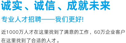 優(yōu)質(zhì)的服務(wù)源于對(duì)產(chǎn)品的執(zhí)著,英才網(wǎng)聯(lián)一直走在專業(yè)人才招聘的服務(wù)前沿,以傳統(tǒng)網(wǎng)絡(luò)招聘與移動(dòng)互聯(lián)相結(jié)合的方式重新定義“互聯(lián)網(wǎng)+招聘”的模式,以大數(shù)據(jù)信息化處理人與崗位的匹配關(guān)系。我們相信,真正的服務(wù)最終是人的服務(wù),服務(wù)在人,成事在心!英才網(wǎng)聯(lián)愿與您攜手同心,共創(chuàng)輝煌。
